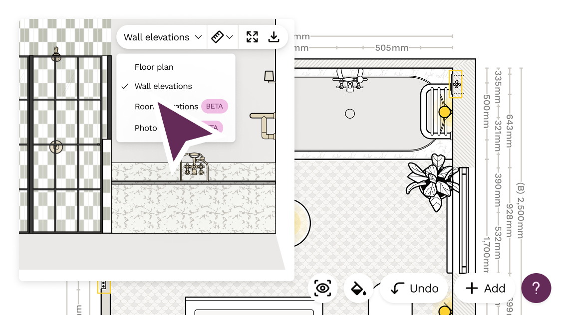 Yes, Reno combines floor plans and wall elevations in one connected workflow, so changes update automatically across the plan without needing to recreate drawings.